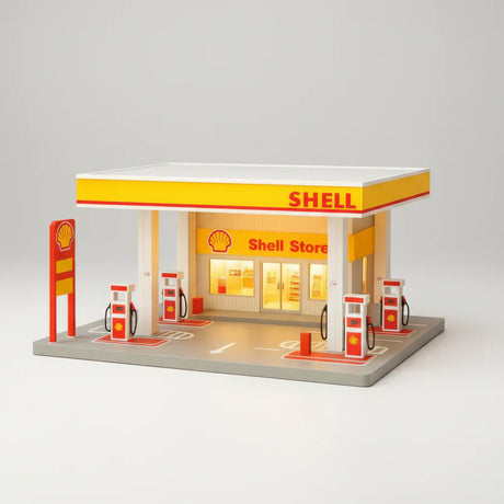 Light-Up Shell Gas Station Diorama Scene For 1:64 Diecast