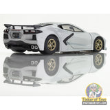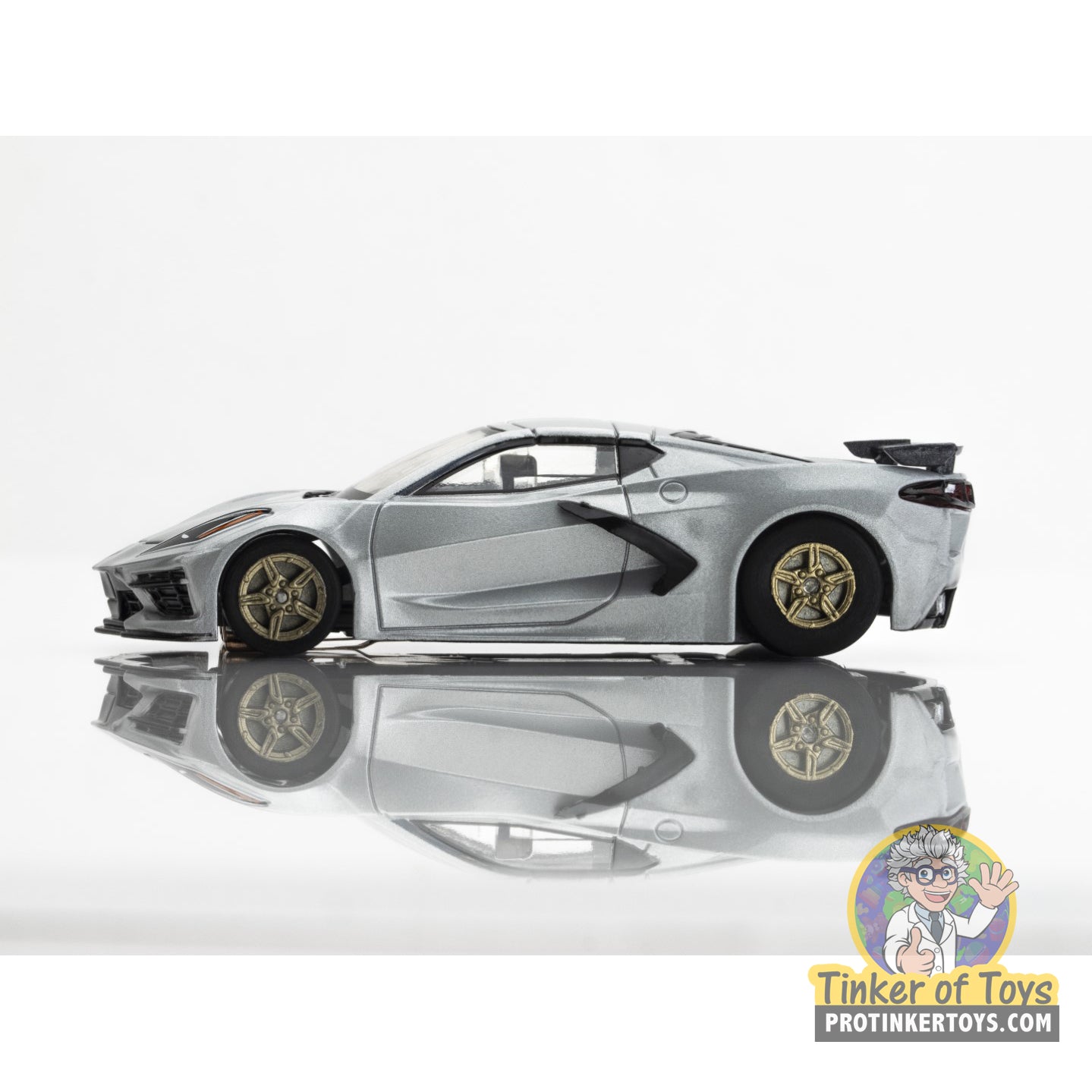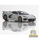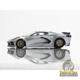 Power and velocity run the gauntlet with the Corvette C8. As mighty as it is vibrant, Ceramic Matrix Metallic silver paint brings the body’s savage shape into bright focus. Dramatic accents of black trim make for a purely fearsome design. Don’t worry, we didn’t forget the rear wing or the detailed 5-spoke gold wheels adding to its ferocity. The 8th generation Corvette comes with 670 horsepower, making it one of the most powerful production Stingrays ever.