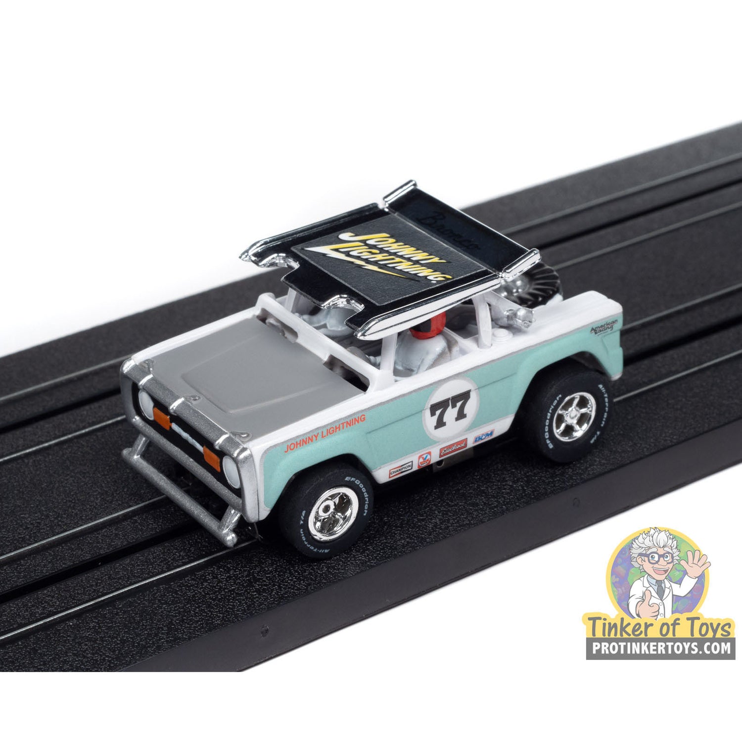 The X-Traction chassis is a modified version of the classic pancake design used in Auto World's ThunderJet Chassis. Increased weight and larger rear wheels provide better performance and superior handling. Underneath, and Ultra-G neodymium traction magnet adds even more track-gripping handling through the tightest curves for maximum racing excitement!
