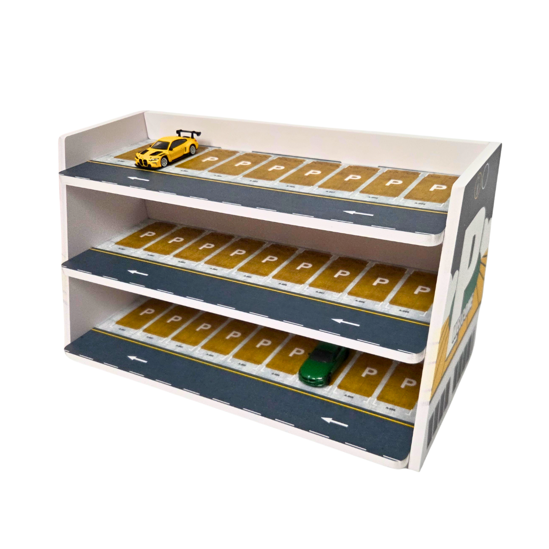 Create a clean, organized multi-level display for your Hot Wheels and 1:64 diecast collection with this detailed Three-Story Parking Garage Diorama Scene. Designed for collectors who want more height and structure without taking up too much shelf space, this garage offers three full tiers of parking and smooth access from all sides.