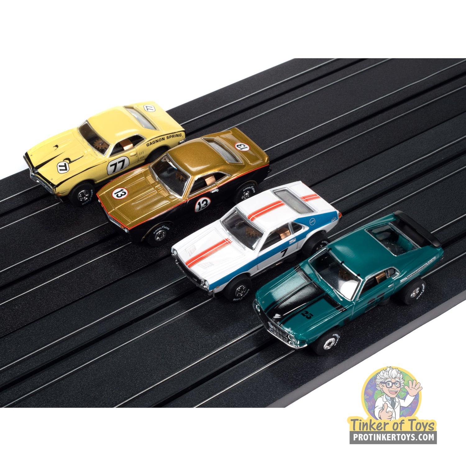 Complete 4-car set featuring legendary Trans-Am inspired race cars, recreated in HO scale by Auto World: Only cars no track