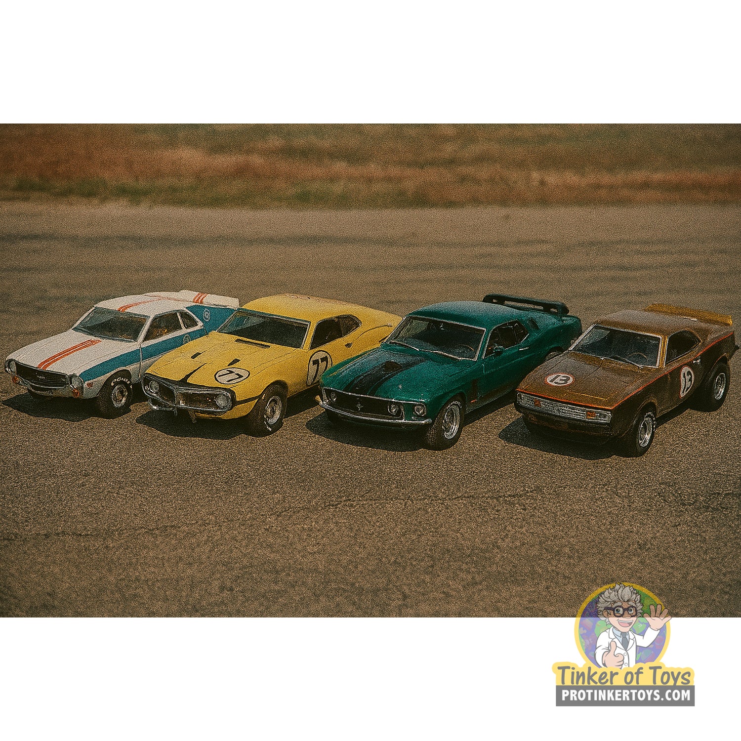 This limited-edition set combines authentic historic liveries with cars inspired by the golden age of American muscle racing. Each car tells its own story—whether tied to a legendary driver, a mysterious build, or iconic sponsorships.