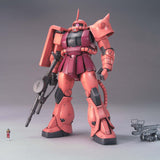 Here comes Char's custom Zaku II unit used in the original Mobile Suit Gundam TV anime series.This kit features impressive articulation and mechanical detail and minor component differences that earned his speed nickname the Red Comet. Includes machine gun, bazooka and heat hawk and crane vehicle.