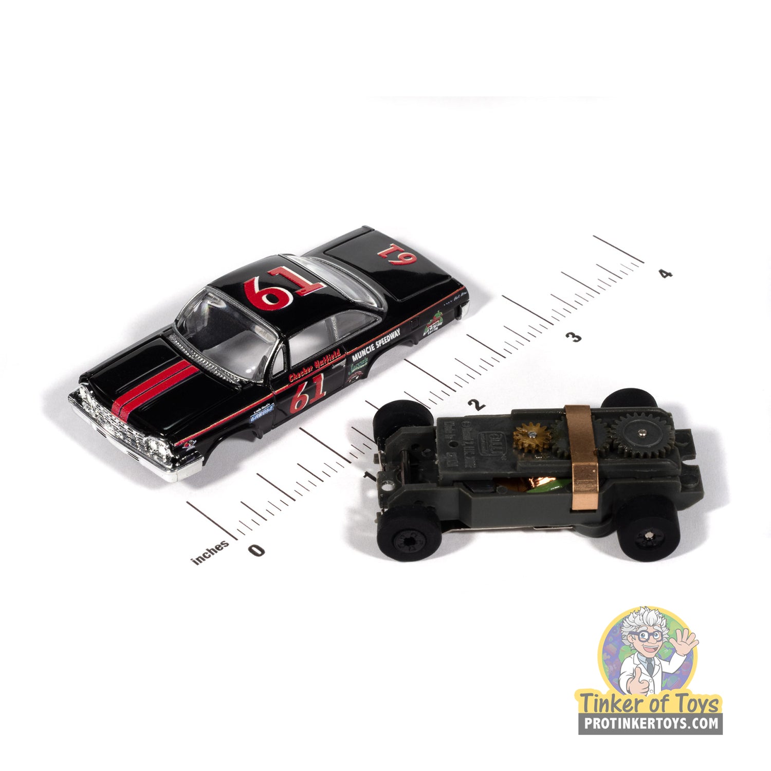 The ThunderJet Ultra G chassis is Auto World's adaptation of the classic "pancake" slot car motor design, originally developed by Aurora in the early days of electric slot racing. Still immensely popular today, entire slot racing events are created around this chassis. It continues to be a favorite with collectors and hardcore drivers. Closer to HO scale, ThunderJet bodies mount over the chassis using two small screws. ThunderJets are retro slot car racing at its best!