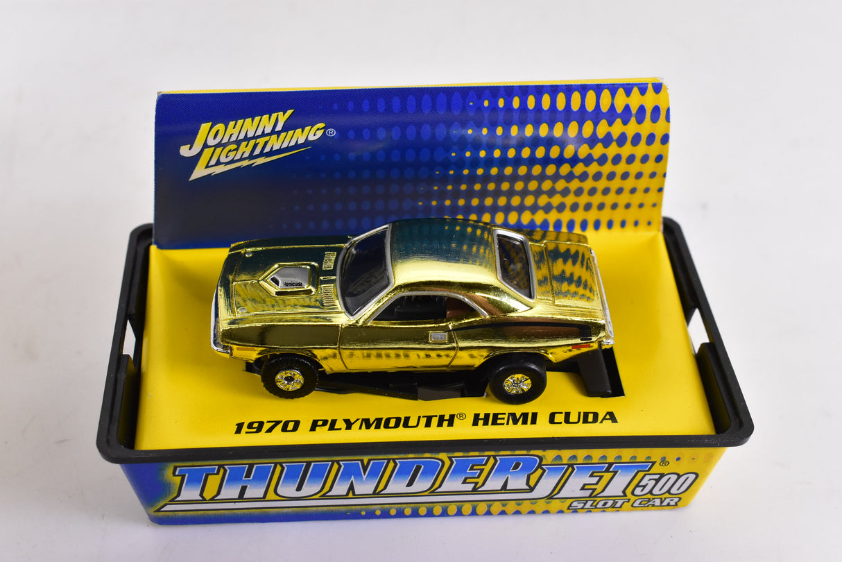 1970 Plymouth Hemi Cuda Gold Chrome ThunderJet 500 Chassis Ho Scale Racer| Auto World
