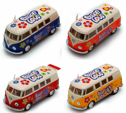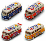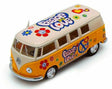 Item# 5060DF 1962 Volkswagen Classical Bus by Kinsmart is a die cast metal 1:40 scale toy car. Available in red,orange, yellow, and blue. Suitable for ages three years and up.