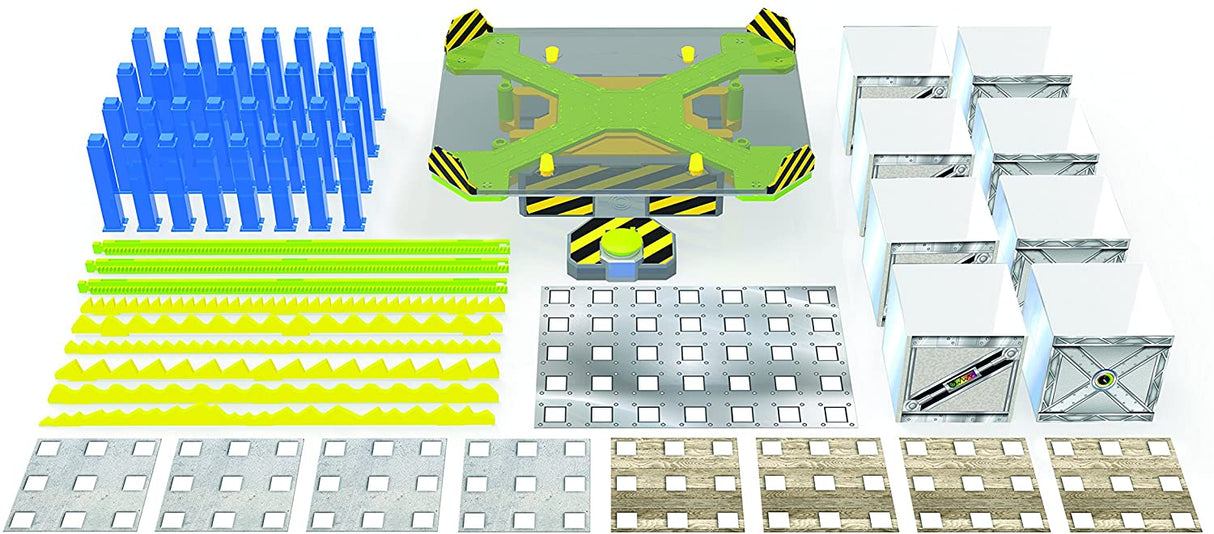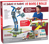 - 53-piece kit includes a shake table modeled after the large-scale version used by real engineers: motorized dual-action shake machine with variable speed, 32 building girders, 9 floor panels, 8 wall panels, 1 base panel, 6 interchangeable quake keys, 3 interlocking power spines, sticker sheet, and 24-page illustrated science activity book