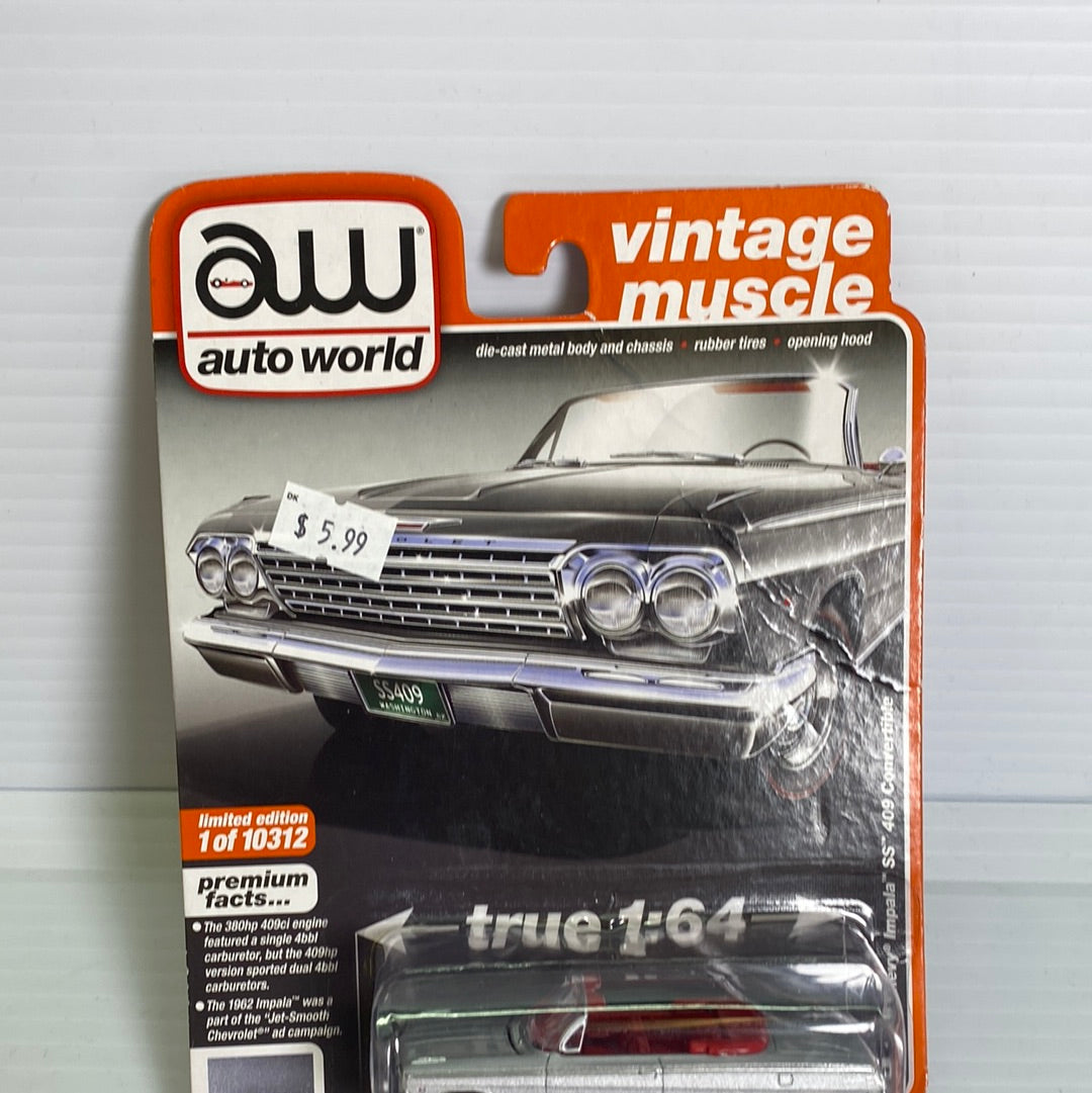 Auto World Vintage Muscle Premium Version A & B | AW64262 | AW Die Cast - 1962 Chevy Impala SS 409 Convertible Silver is backordered and will ship as soon as it is back in stock.