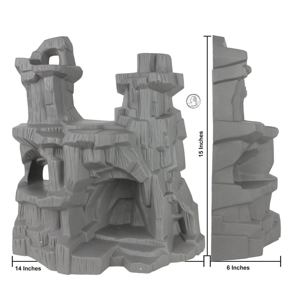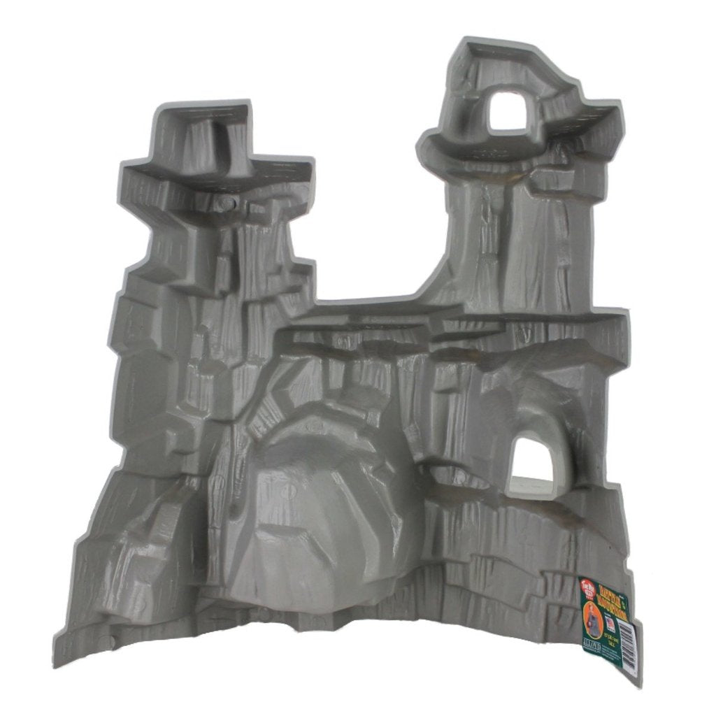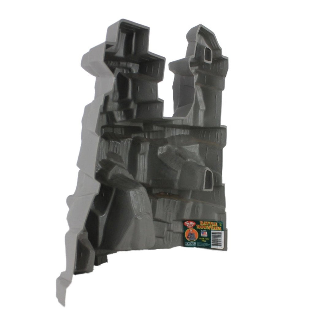 The last of the great American Toy Playset Accessories is back! The Tim Mee 'Battle Mountain' is proudly manufactured in the United States and features plenty of cliffs, ledges and even a couple of caverns for your favorite figures to explore. Cast in medium gray color and made from slightly soft HDPE plastic, the Mountain measures 14 inches wide, 6 inches deep, and stands and impressive 15 inches tall. Works with lots of different figure scales including HO, 28mm, 54mm, 1:32, and even 3.75 inch tall action figures. Originally produced by Tim Mee around 1991 for a variety of boxed playsets, the mountain came packed along with army men, dinosaurs, jungle animals, and even the sci-fi figures known as the 'Galaxy Laser Team'. For the first time ever, the Mountain is available as a separate accessory so you can pair it with your favorite figures for play or display. This is a sturdy American made made toy meant to be played with for years to come! Recommended for ages 5 to 105!