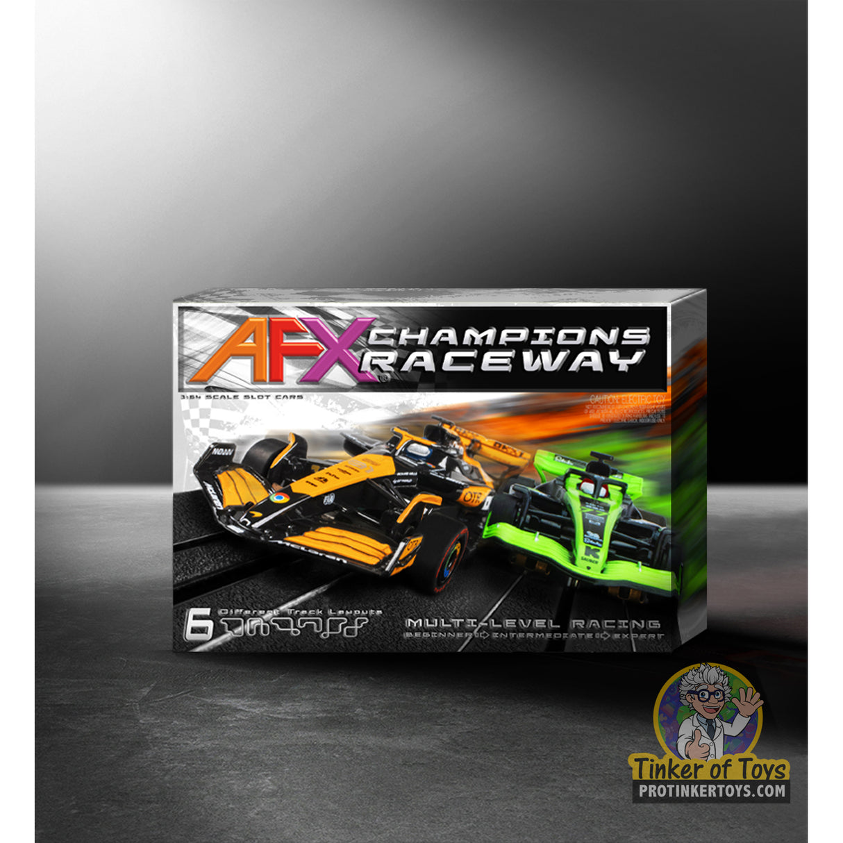 With six possible track configurations and multi-level layout options, Champions Raceway offers racing thrills for beginners, intermediates, and experts alike. AFX’s legendary drivability, quality, and design come together to give you the best out-of-the-box slot car set on the market.