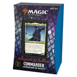 Magic: The Gathering Adventures in the Forgotten Realms Commander Deck – Dungeons of Death The Dungeons of Death Adventures in the Forgotten Realms Commander Deck set includes 1 ready-to-play deck of 100 Magic cards (2 traditional foil, 98 nonfoil), 1 foil etched Display Commander, 10 double-sided tokens, 1 life tracker, 1 deck box (can hold 100 sleeved cards), and 1 reference card, all in reduced-plastic packaging.