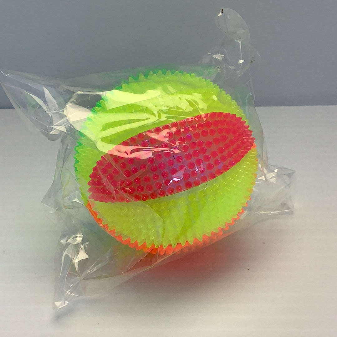 Item# 84116 Light Up Squeaky Beach Ball by BVP is a ball that lights up when it bounces and it makes a sqeaking noise. Assorted colors. A great squeaky light up fun!