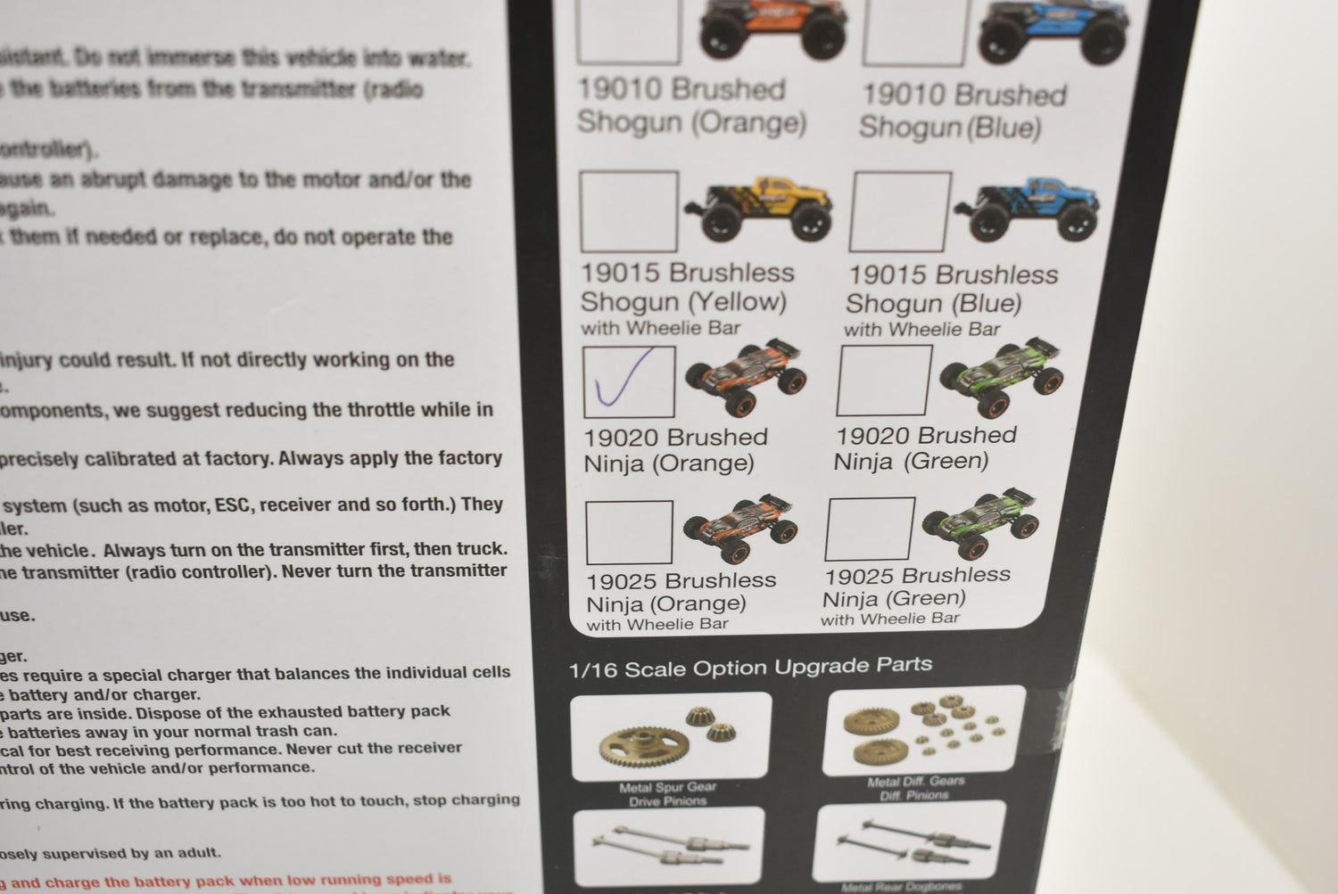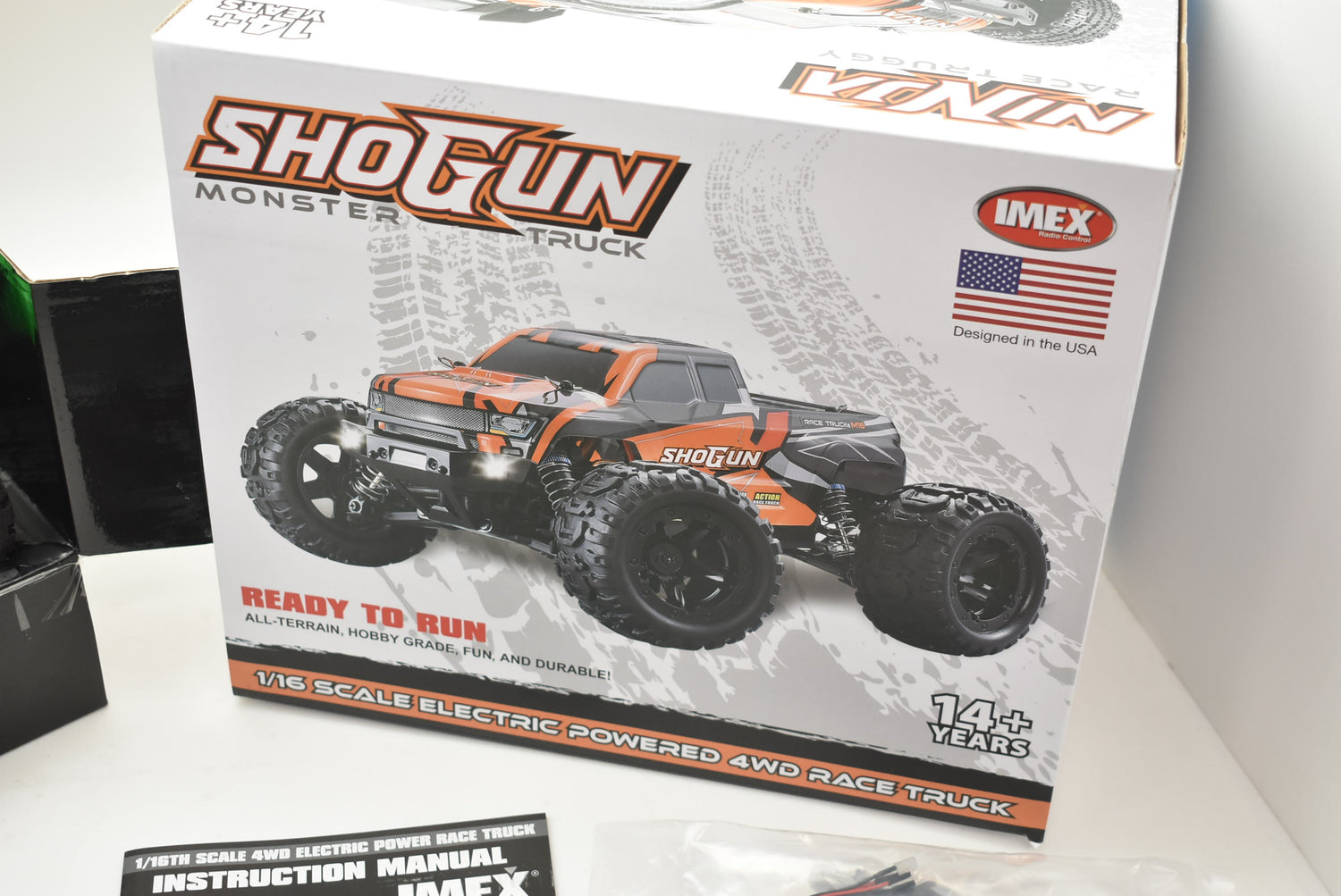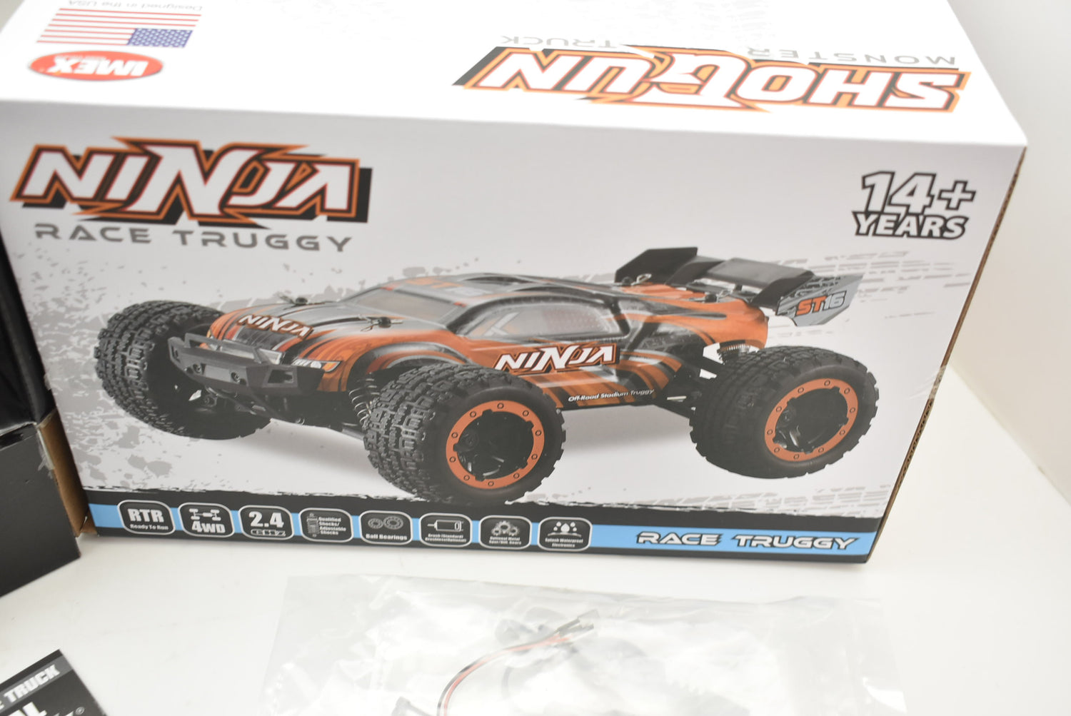 THE Shogun and Ninja trucks are 1/16th scale, 4x4, 2.4 ghz and come in a RTR (Ready-To-Run) package right out of the box. it is ready to race after you install batteries to the transmitter and truck.Fast acceleration by either the brushed or brushless motor.smooth forward/backward/brake control, These trucks features an independent suspension and high ground clearance make the truck a great all terrain vehicle whether it be on or off-road. Great attention has been made when developing the truck from the chassis layout for the performance to offer a great band for the buck while still offering performance and reputability at the same time.