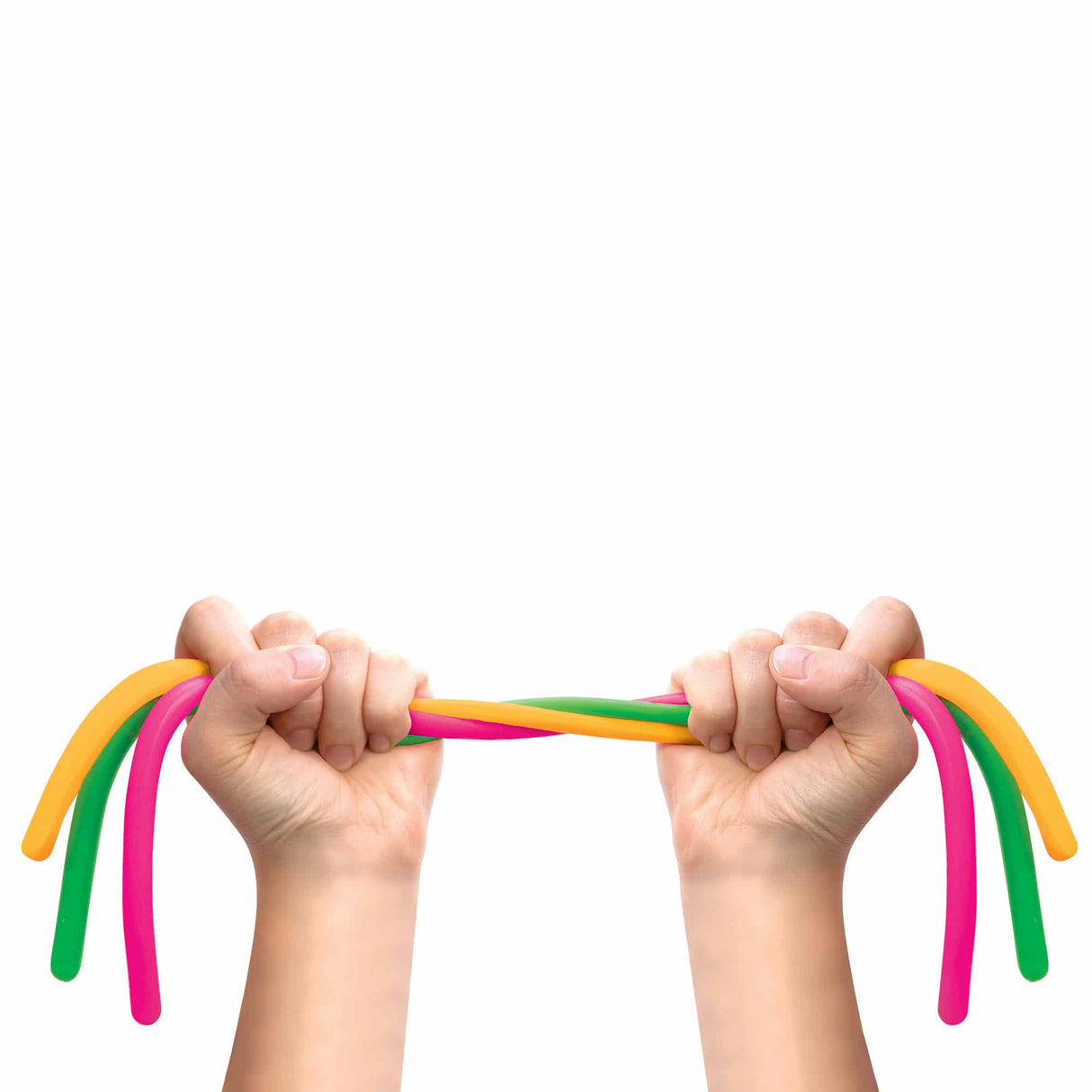 Noodlies offer the fun of playing with food—without the mess! These colorful, stretchy noodles are perfect for squeezing, stretching, knotting, or mashing for hours of sensory satisfaction. Packaged in a fun take-out box, Noodlies provide a unique fidget experience that helps soothe anxious tendencies and promote focus.