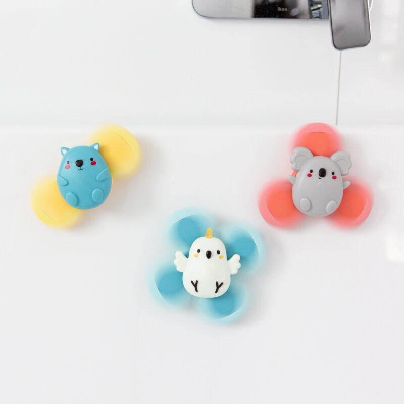 - Set of 3 assorted animals (cockatoo, koala, wombat) with 2, 3, or 4 spinning paddles