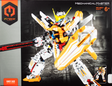 The Vanguard Sentinel is a heavily armored mech, exuding an imposing presence on the battlefield. Its robust frame boasts superior defense, with thick plating and enhanced shielding. The mech's color scheme consists of a striking combination of white and orange, accentuated by sleek grey details. It features a unique yellow crest-like antenna on the head, adding a touch of distinction to its appearance.