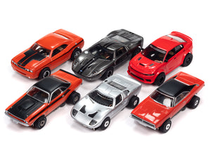 The ThunderJet Ultra G chassis is Auto World's adaptation of the classic "pancake" design, originally developed by Aurora in the early days of electric slot racing. Still immensely popular today, entire slot racing events are created around this chassis. It continues to be a favorite with collectors and hardcore drivers. Closer to HO scale, ThunderJet bodies mount over the chassis using two small screws. ThunderJets are retro slot racing at its best!
